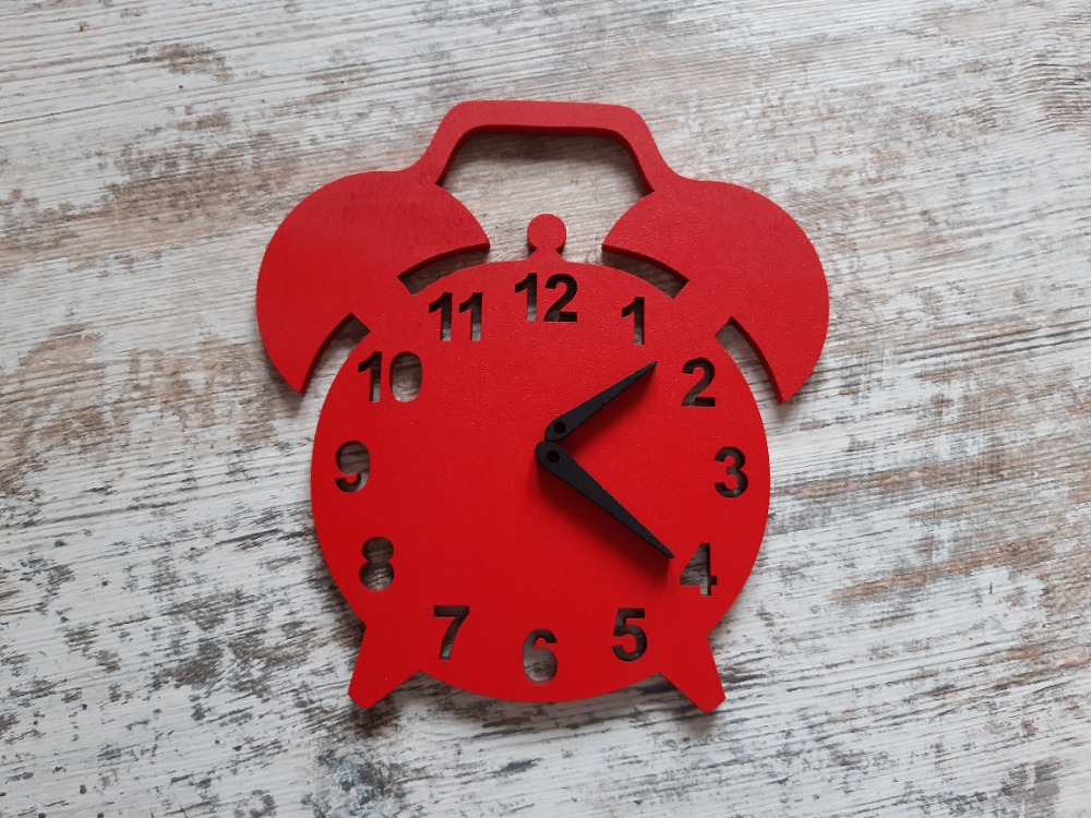 Hodinové ručičky přišroubujete spolu s budíkem k desce a zábava může začít.