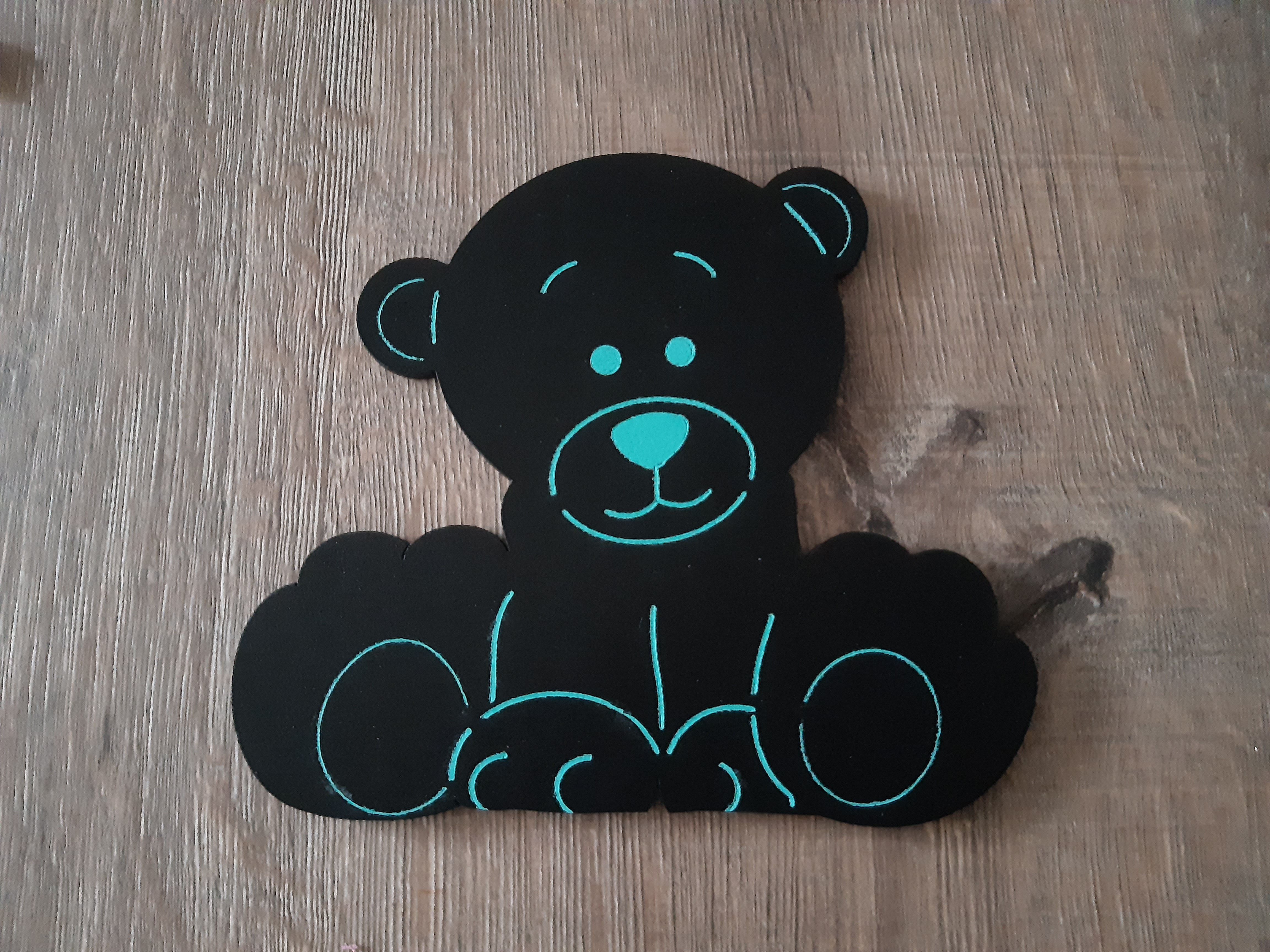 Vyříznuto z 5 mm překližky - bylo vymalováno jako dekorace pro písmenka na dveře/stěnu.
