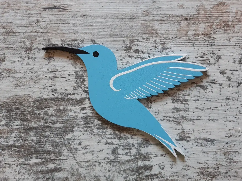 Malovaný kolibřík - rozměr 14x10 cm (možno vyrobit i jiný rozměr, kvůli slabému zobáčku doporučujeme ale co největší)