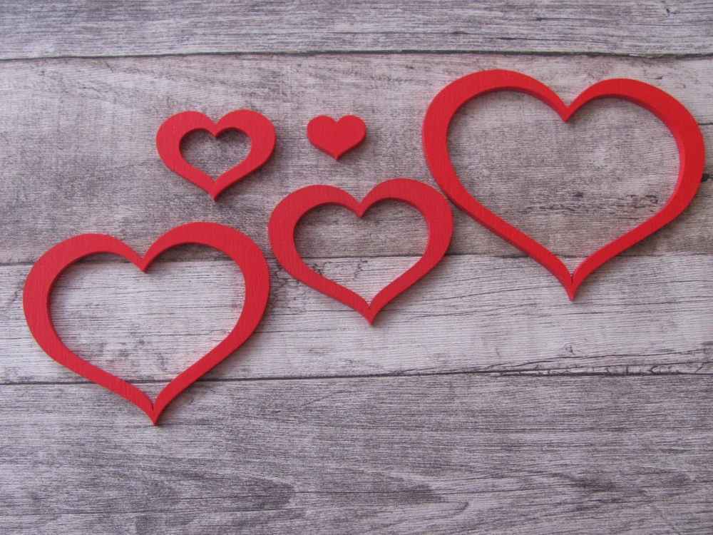 Dřevěná malovaná srdíčka vyrobená z 5 mm překližky.